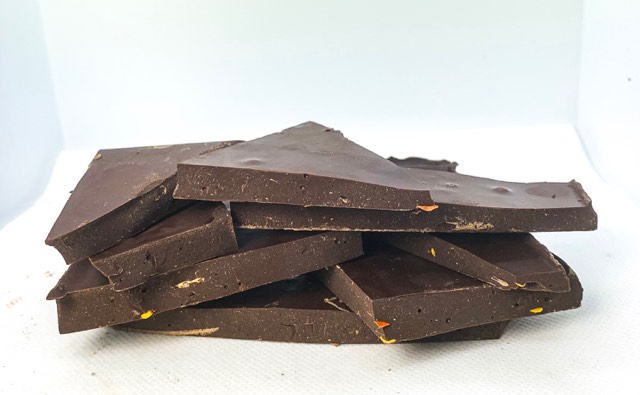 Milk chocolate (sugar, milk solids, cocoa butter, cocoa mass, emulsifiers (soya lecithin, 476), flavours, milk chocolate, contains cocoa solids 27%, milk solids 24%) Chilli