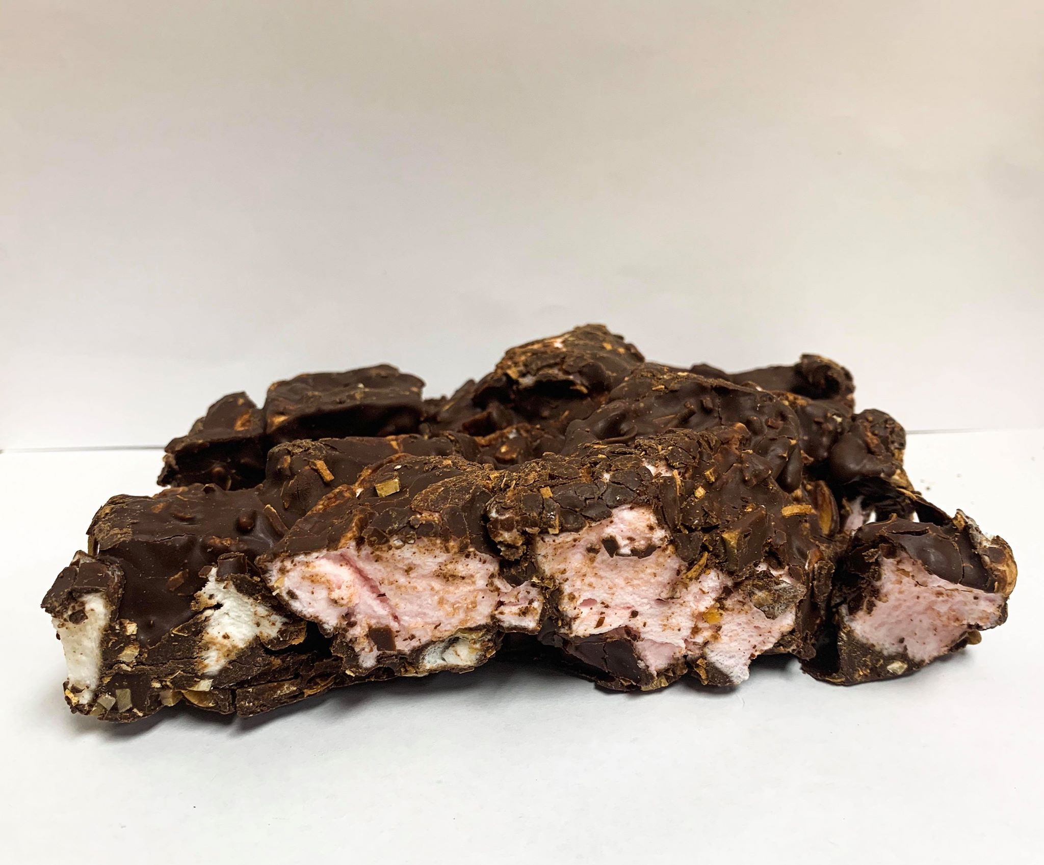 Sugar, Glucose(maize), Dark Choc (sugar, milk solids, cocoa butter, cocoa mass, emulsifier (476, flavour), Gelatine, Almonds, coconut, Water, Flavour, Colour E122, Dark Choc contains cocoa solids 43%, Milk solids 3%