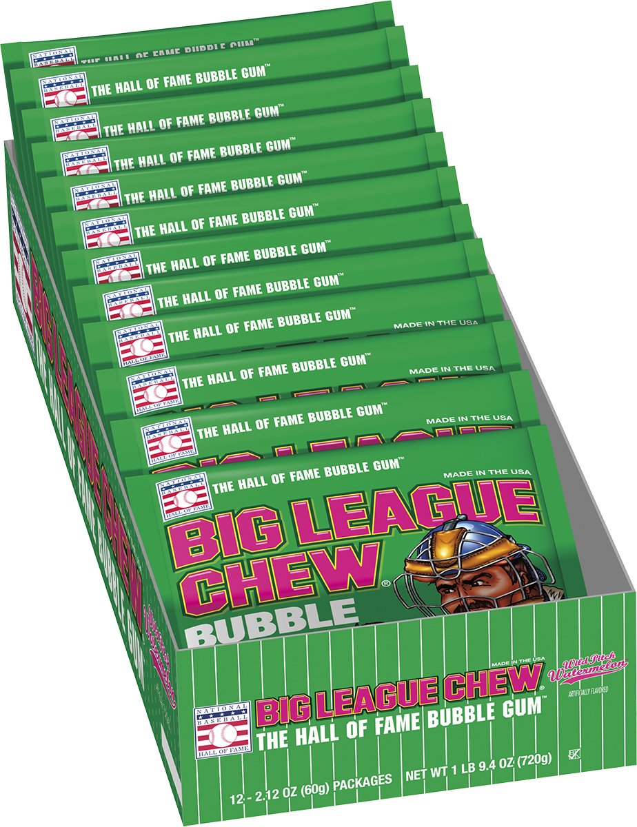 Watermelon-flavored shredded bubble gum that is packaged in an aluminum foil pouch.  Gluten Free, Vegetarian, Vegan.