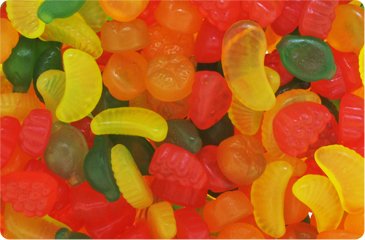 Mini Fruit Salad Gums are a gummy fruity flavoured lolly.