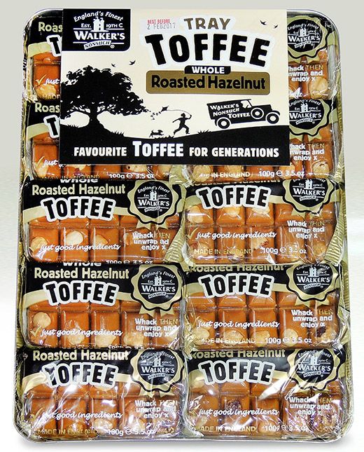 Andypack - Hazelnut Toffee 10 X 100G. Sweets are supplied in manufacturers original packaging. All packs are sealed and labelled with best before date, weight and ingredients and name of product. Gluten Free.