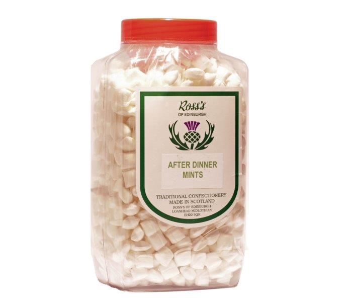 Ross's of Edinburgh's After Dinner Mints are small, soft pillows of delicious mint. A delicious light 'chalky', melt in your mouth mint. Vegetarian, Vegan.