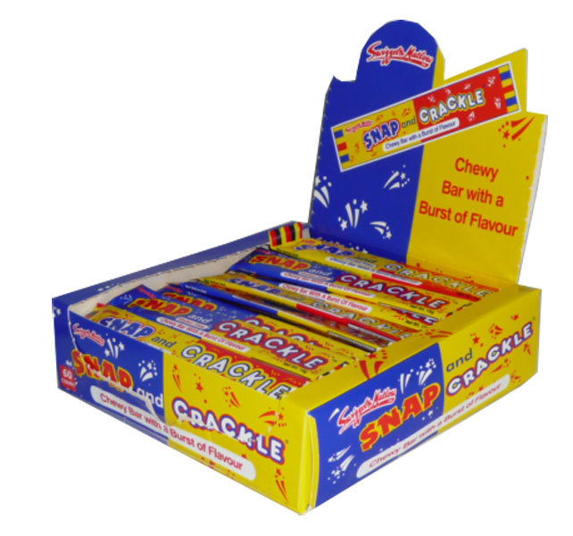 Swizzels Matlow Snap & Crackle are fruit flavoured chew bars with a refreshing sherbet centre.